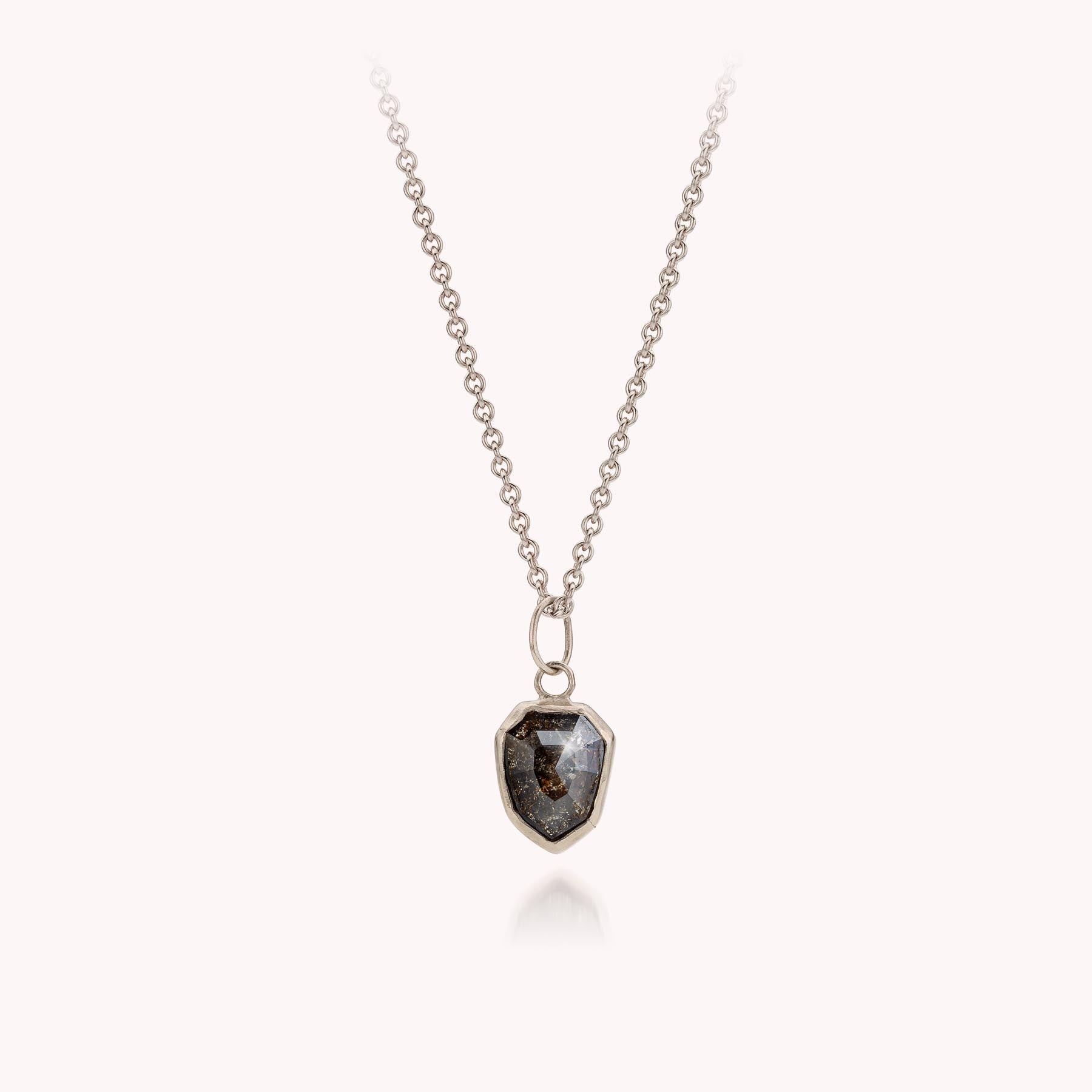 hanger in witgoud met natuurlijke zwart diamant, schildvorm
