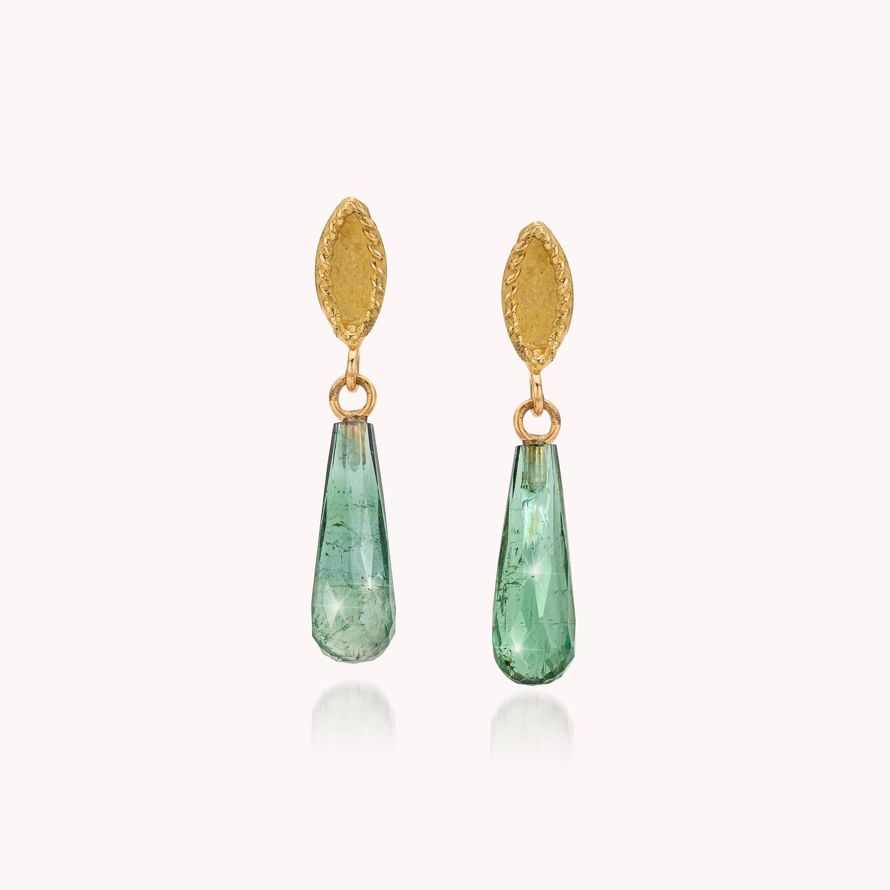 geelgouden oorhangers met druppel groene tourmalijn